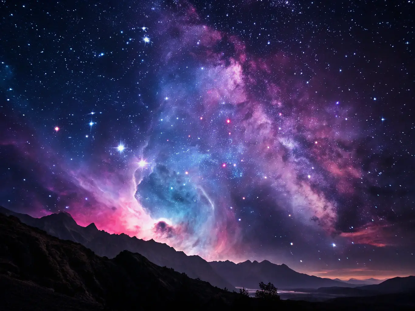 一幅迷人的数字空间艺术作品,展示了宇宙星云和未来主义主题。